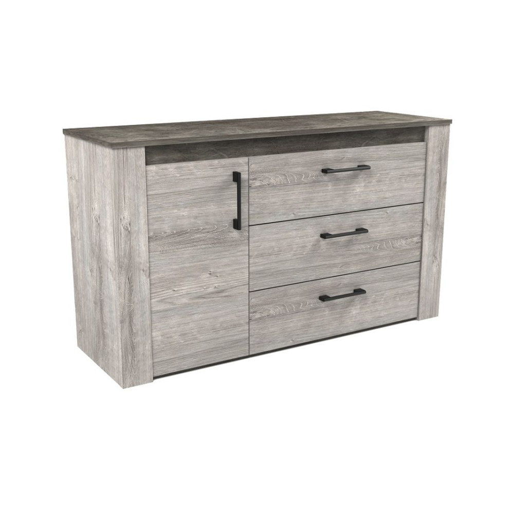 В комоде малом Денвер располагаются три выдвижных ящика. Шариковые направляющие надежно удерживают ящики при открывании.